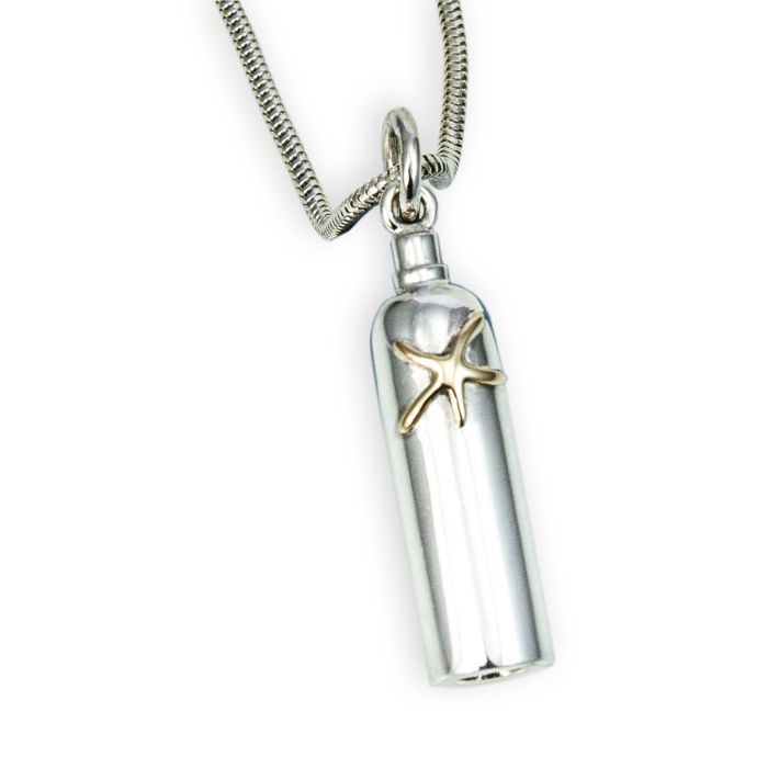 18ct gold starfish on a solid silver tank pendant